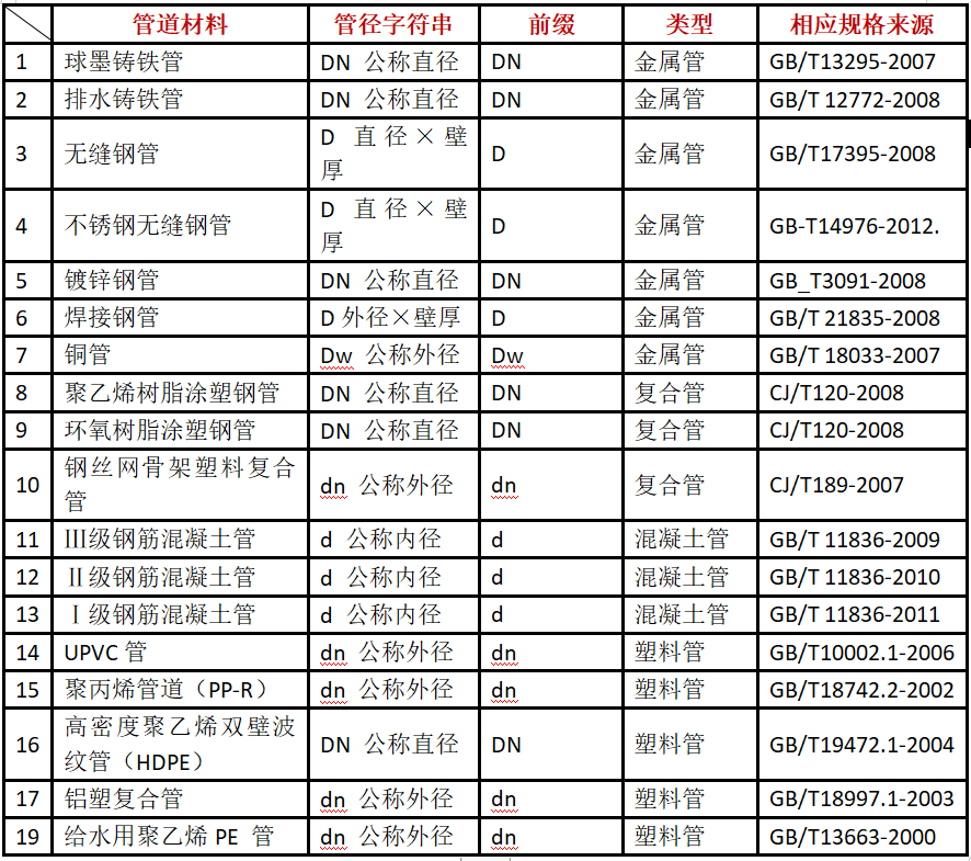 • 复合管、结构壁塑料管等管材,管径应按产品标准的方法表示;